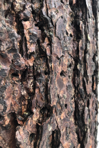 L’écorce de la pruche du Canada arbore une teinte brun rougeâtre et commence à s’écailler dès le jeune âge de l’arbre. En vieillissant, elle se couvre de profondes crevasses et de larges crêtes. Les pics maculés, friands de sa sève, percent de petits trous alignés dans le tronc pour y accéder. Ces séries de marques bien visibles témoignent de leur passage et ajoutent un charme particulier à cet arbre fascinant.