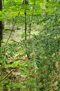 En observant bien ses branches, on remarque de petites cocottes qui évoquent de jolies fleurs miniatures, de 12 à 20 mm de longueur. Ces cônes minuscules peuvent produire plus de 6 800 semences chaque année! Les pruches atteignent cette impressionnante productivité vers l’âge « jeune » de 450 ans. Elles en produisent autant, car une grande partie servira de festin aux écureuils et aux souris, dont les traces apparaissent souvent dans la neige. Ces petits rongeurs sont d’ailleurs les meilleurs alliés de la pruche : en dispersant les graines, ils favorisent leur germination ailleurs.