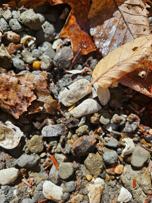 D’autres reliques des temps anciens, témoins du passé immergé de cette région, sont les petits coquillages blancs que l’on retrouve au fond de la rivière et sur ses berges. Il est surprenant d’observer ces éléments océaniques en plein milieu forestier. Pourtant, il y a 10 000 à 13 000 ans, une mer intérieure recouvrait une grande superficie, s’étendant de chaque côté de l’actuel fleuve Saint-Laurent, de Québec à Cornwall (Ontario). Malgré les 8 000 ans qui se sont écoulés depuis le retrait de la mer, ces petites empreintes historiques persistent et nous empêchent d’oublier notre passé.